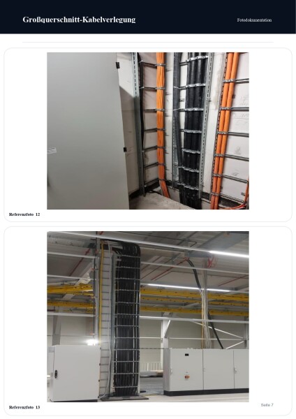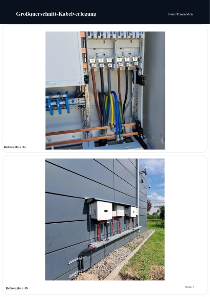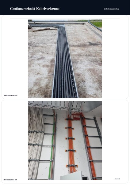 Wir sind als zuverlässiger Nachunternehmer mit 26 fachgerechten Monteuren auf Kabelverlegung, Kabeltrassen, Tragesysteme, Großquerschnitte, Photovoltaik-Verkabelung sowie unterstützende Arbeiten im Bereich der Elektro-Infrastruktur spezialisiert.